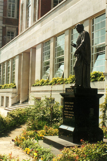 The Institution of Electrical Engineers (IEE) commissioned two bronze statues of Michael Faraday in the late 1980s. One statue was to be positioned in front of the IEE’s London venue at Savoy Place and the other at its Stevenage Office, Michael Faraday House.