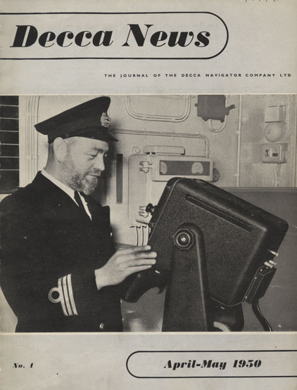The image above shows the cover of the first issue of Decca News, published in 1950, which became Decca Navigator News in 1951. The image shows Chief Officer of the S.S. British Merit, W R Mowbray, using a recently installed Decca Marine Radar, type 159.