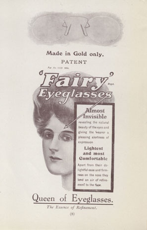We recently received back from conservation specialists several volumes of pamphlets from our S. P. Thompson collection of pamphlets. This has allowed us to examine these pamphlets in detail for the first time since they came into the possession of the IEE in the first half of the twentieth century (previously too fragile to handle to any great extent). One of the volumes, which contained material on a wide variety of subjects, included several pamphlets on the topic of optics. This material included a marketing pamphlet titled, ‘eyes that rest upon us’, which had within its pages the advertisements shown above and below.