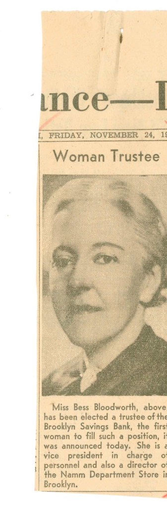 Other connections are from Caroline’s advisory work and with the IFBPW. Caroline had travelled to the US in 1942 to report and advise on the employment and training of women. She made friends with her counterparts in the US, including Bess Bloodworth, head of HR at the Namms Department Store, Brooklyn, and the first woman to be appointed as a bank trustee.