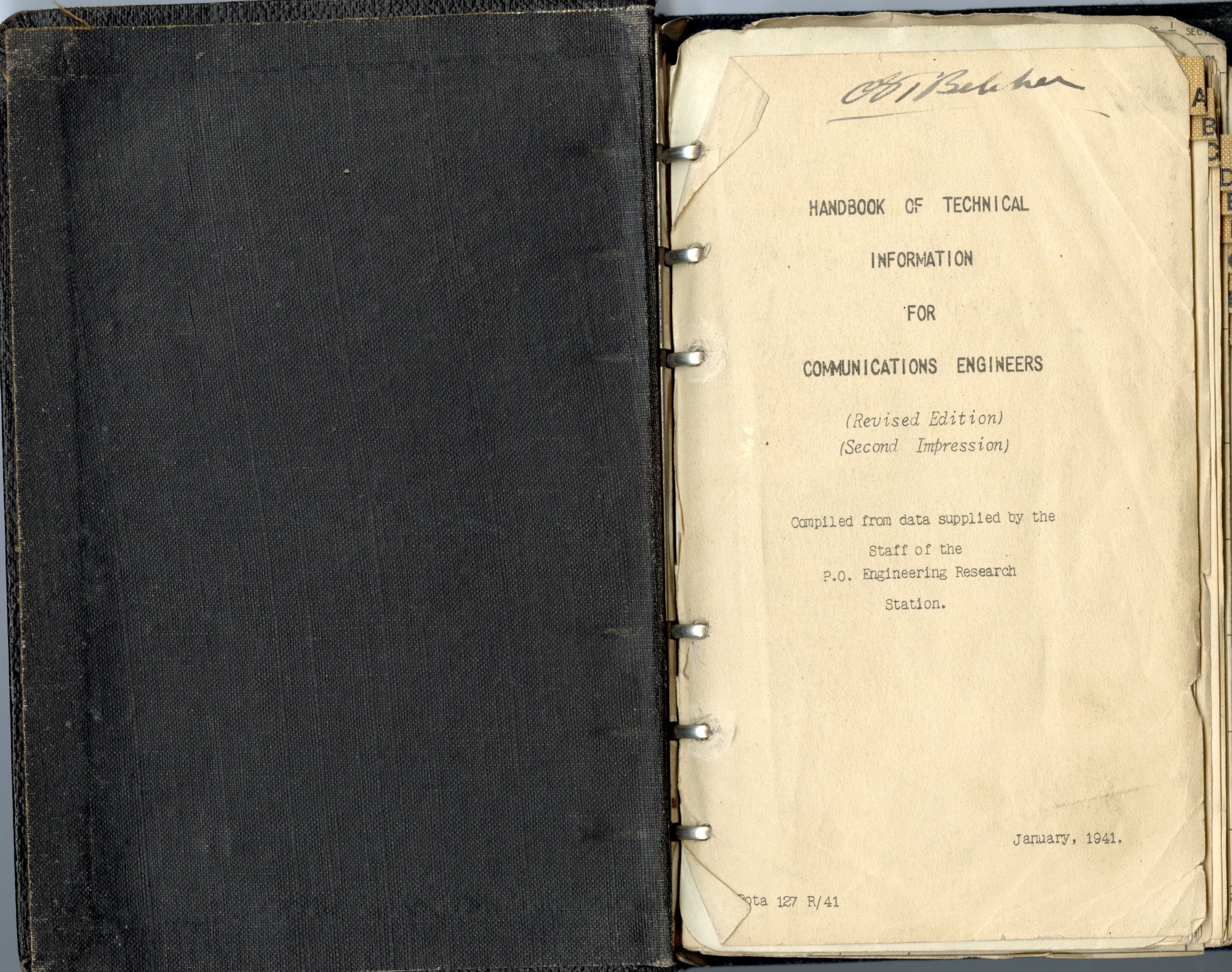 Earlier this year, the IET Archives received a ‘Handbook of Technical Information for Communications Engineers’, issued to Post Office Engineering staff at Dollis Hill Research Station during the 1940s. This handbook belonged to Post Office engineer, Tom Belcher, and serves as a small reminder of his fascinating career. His son, Peter Belcher, has kindly agreed to share his memories of his father’s life and career.