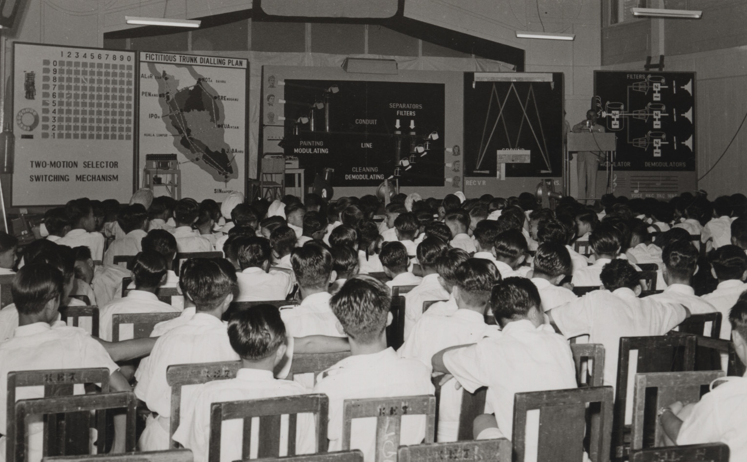 The 26th Faraday Lecture in 1954-1955, entitled ‘Courier to Carrier in Communications’ delivered by Mr T B D Terroni, was presented to audiences in both the UK and Malaya (now Malaysia). There was good reason to send the lecture all the way to distant shores on this occasion due to the approaching independence of Malaya and Singapore from the British Commonwealth which was achieved in 1957. As a result, they envisioned an exodus of expatriate chartered engineers and a desire to staff the public services with Malayan engineers. It was therefore imperative to attract recruits in electrical engineering. Delivery of the Faraday Lecture locally around Malaya was justified as a means to stimulate this recruitment drive. Further to this there was to be considerable economic investment in Malaya including a large expansion in communications and electricity supply which would increase the need for engineering staff.