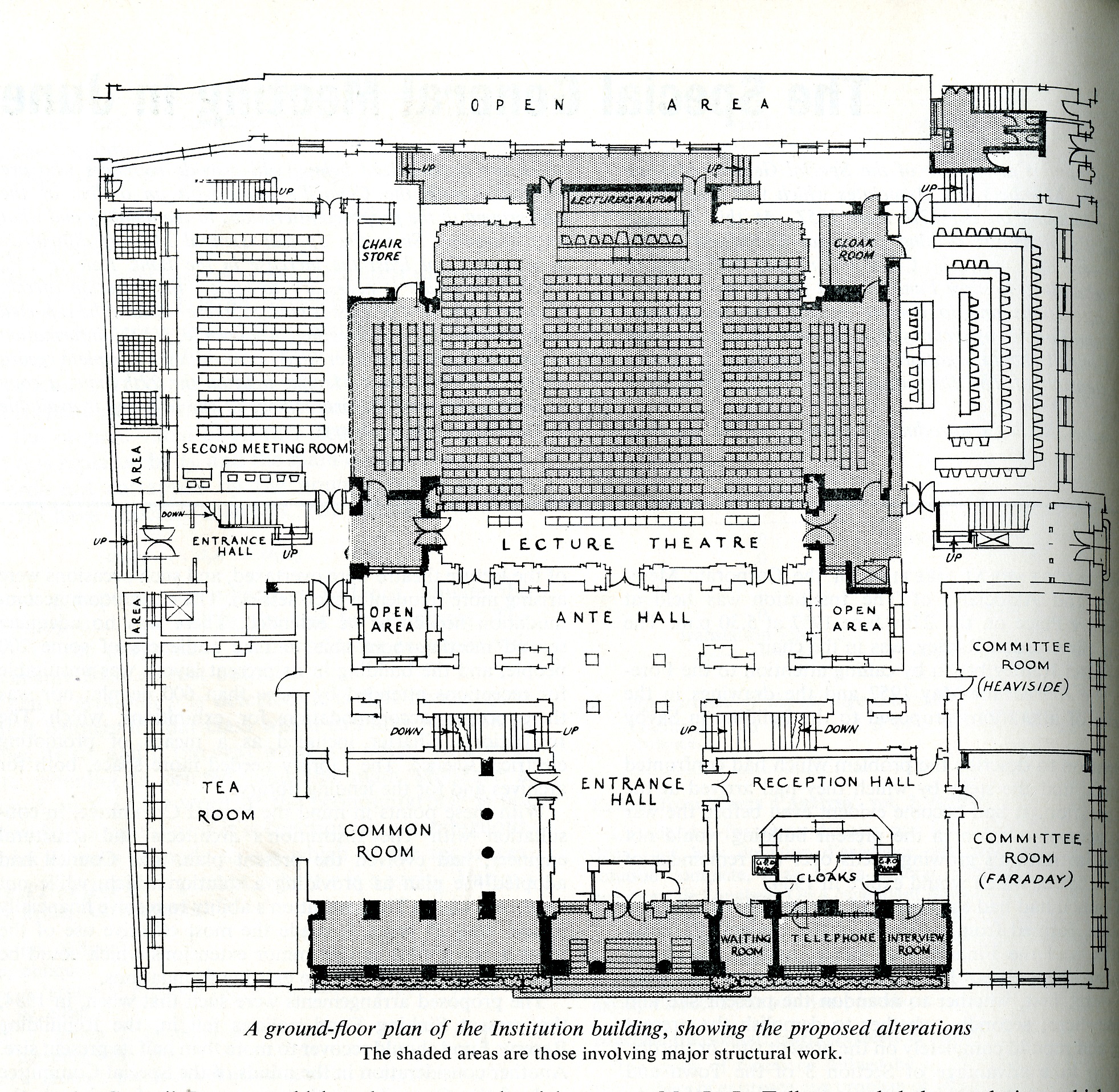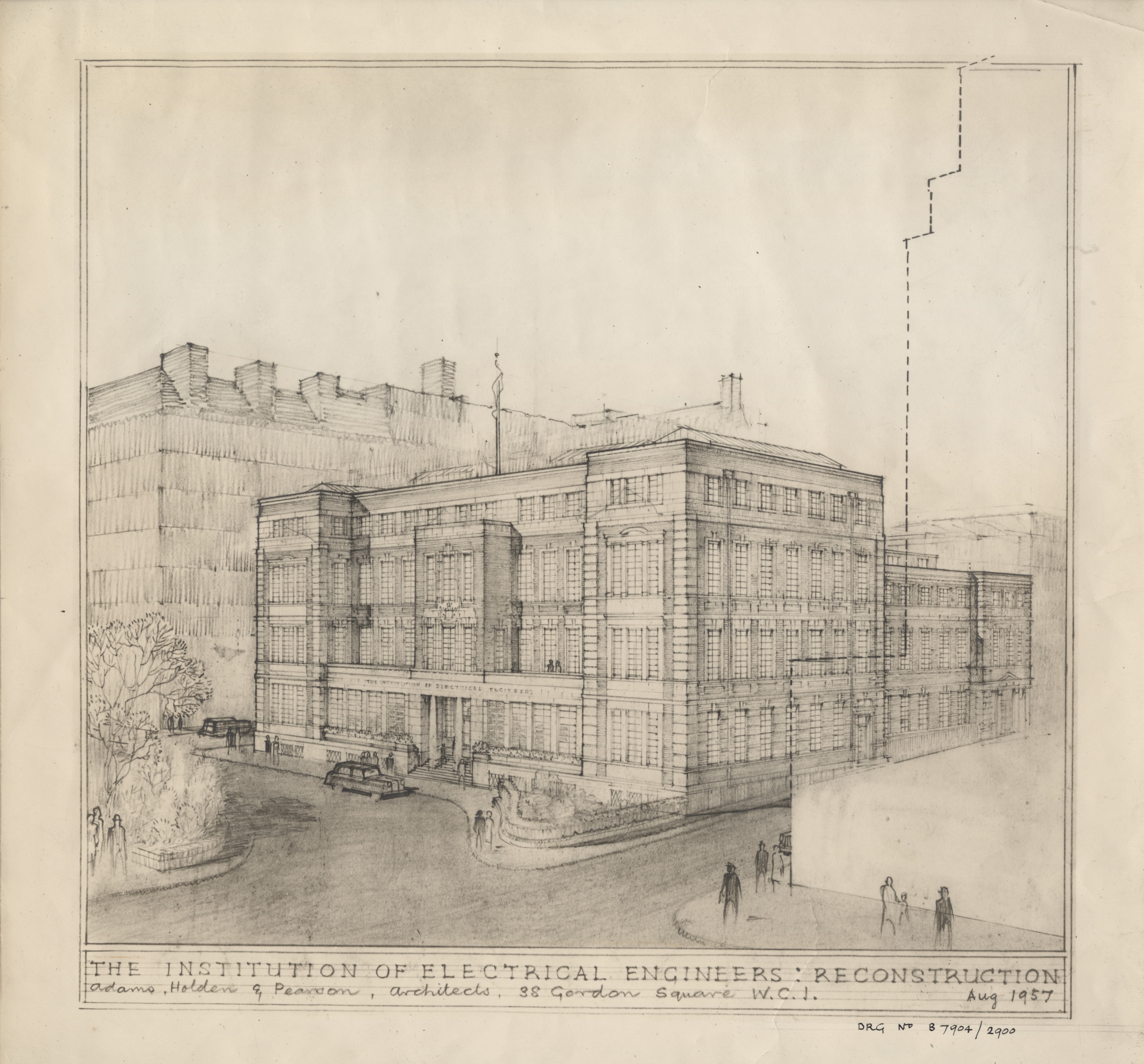 In the 1950s, the Institution of Electrical Engineers (now the IET) needed more space. The lecture theatre, designed in 1909, was not big enough for the most popular events, and there was no large reception room. The Institution had three options: