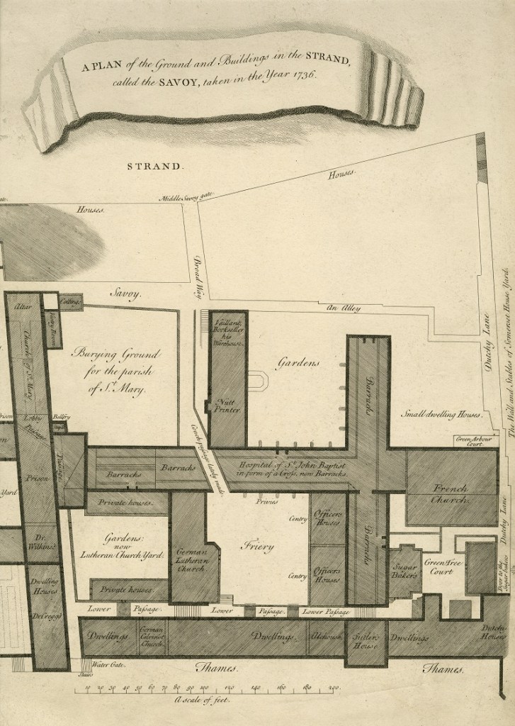 The area of the Savoy Manor takes its name from Peter, Count of Savoy, who was given the land by Henry III on 12 February 1246. He built a palace on this site but after his death in 1268 the property was left to a hospice in Savoy. However, his niece, Eleanor of Provence, Queen to Henry III, bought back the land. The land was given to her son, Edmund Plantagenet, the first earl of Lancaster. The original layout of the palace is unknown but was extended by successive Earls of Lancaster. It was partially destroyed during the Peasant’s Revolt of 1381.