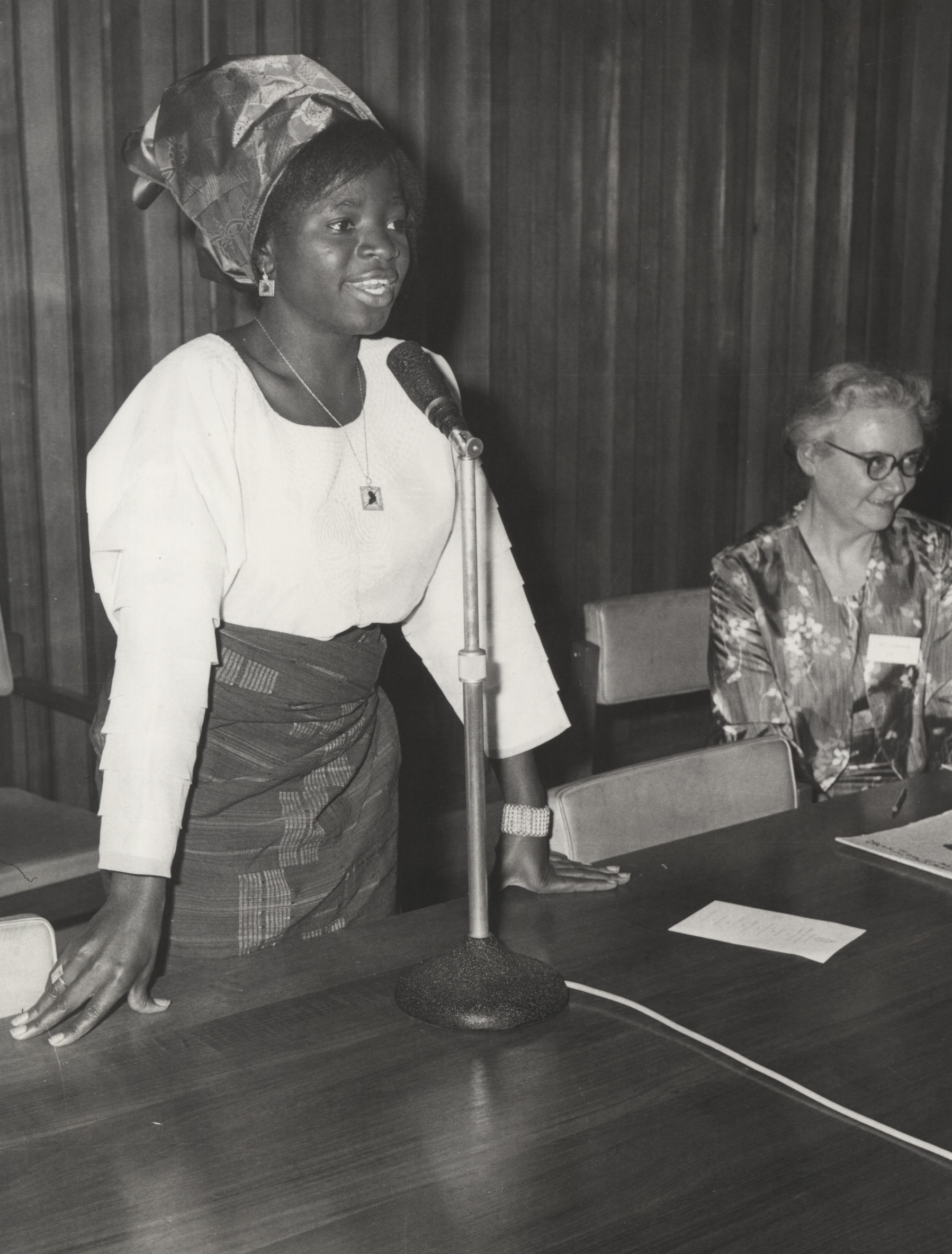 Muwanga was awarded funding from the Caroline Haslett Memorial Trust so she could attend the 1967 ICWES conference and appeared on stage at the opening ceremony.