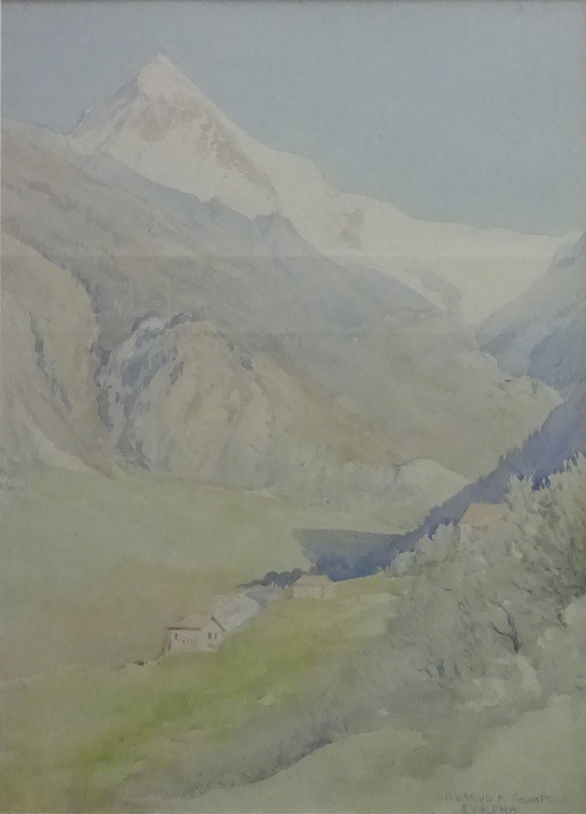 Having gathered information and experimented, Thompson’s next step was to find some company. He was a joiner: he was a member of many societies and organisations and often served as president. He met fellow artists on family holidays to Switzerland and in 1884 exhibited some of his watercolours and sketches at the Dudley Gallery in London. He joined the Royal Watercolour Society and also exhibited at the Alpine Club.