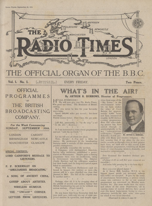 The image above shows the cover of the first issue of the Radio Times that was published 28 September 1923. We have this issue and other ‘special’ issues of the Radio Times, as well as some other BBC related material,... Continue Reading →